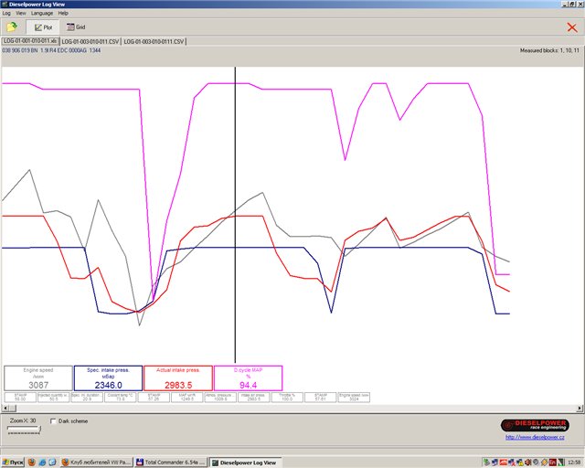 А причина у тебя в 75 клапане. Смотри скважность импульсов (11 группа 4 поле). Он у тебя по большому счету на максимуме надудва всегда. А должна быть картина в виде пилы (это же регулятор наддува).