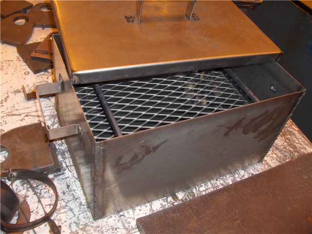 т.е. развести огонь из чистых не вонючих дров и на пути пламени которое должно засасываться тягой в трубу установить отсекатели пламени, тем самым будет один жар + запах дерева, должно получиться очень вкусно, т.к. мясо будет даже немного подкопченное от дыма