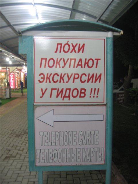 Супер реклама! В Сиде такой еще не было. А ведь так оно и есть, у гида 45 баксов, рядом в турфирме 15....