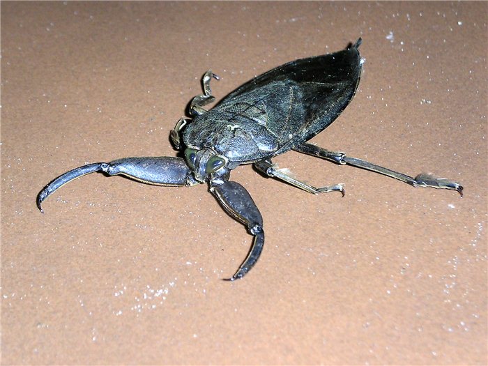 Ну типа водяной клоп. Живет тут в районах, где воды много, штаты Веракрус, Табаско... Кушают мелких рыбок, лягушек, тех же саламандр, кстати. Цапнуть за ногу могут, но без особого вреда, а чаще притворяются мертвыми. А в ю-в Азии из, говорят, едят жареными.