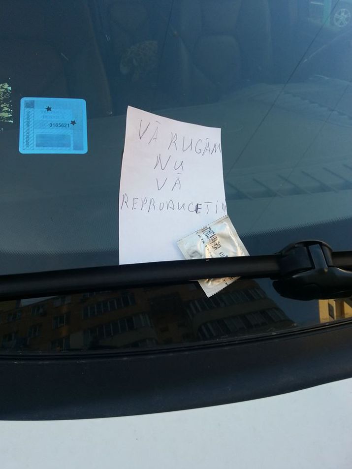 На бумажке неправильно припаркованному порше написанно: Умоляем вас, не размножайтесь !