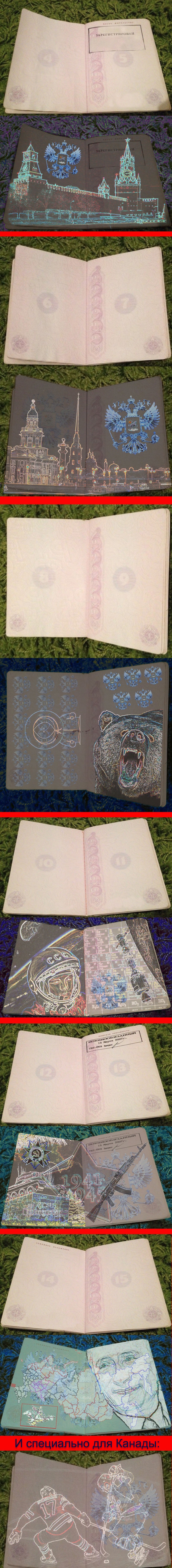 Про наш паспорт ничего не скажу, а вот канадские паспорта в УФ выглядят красиво