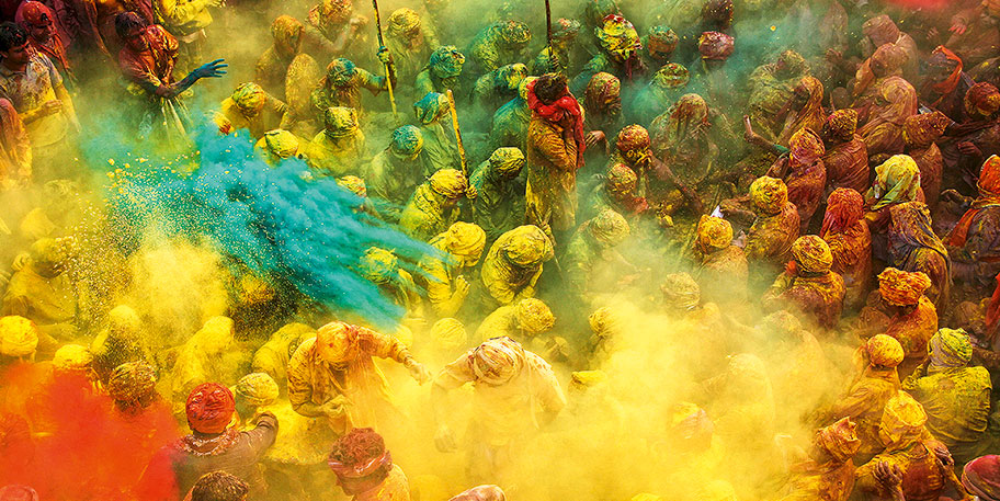Гран-при. Анураг Кумар, Индия. Каждый год весной в Индии проходит Холи, фестиваль цвета. В этот день принято бросать друг в друга цветной порошок из трав, что символизирует победу сил добра над силами зла. Считается, что чем больше порошка попадет на одежду, тем счастливее будет год. Основные цвета снимка — желтый и красный, и если бы не участник праздника, который метнул голубым порошком, фотография не была бы такой замечательной по драматизму, цвету и композиции.