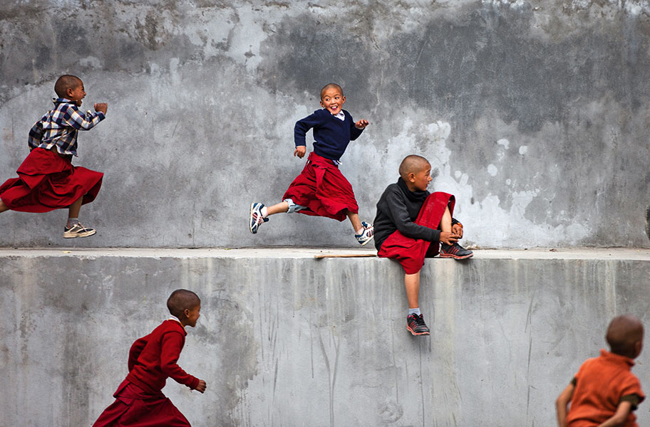 1-е место в категории «Жизнь в цвете» Аруна Бхат, Индия. Тибетский монастырь Ки Гомпа в индийских Гималаях. Каждый день у мальчиков-монахов есть немного времени для обычных детских игр у стен храма. Композицию этой фотографии делает контраст между цветной одеждой, детским весельем и строгими серыми стенами монастыря.