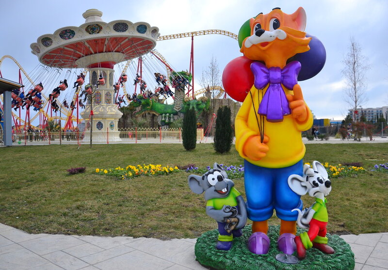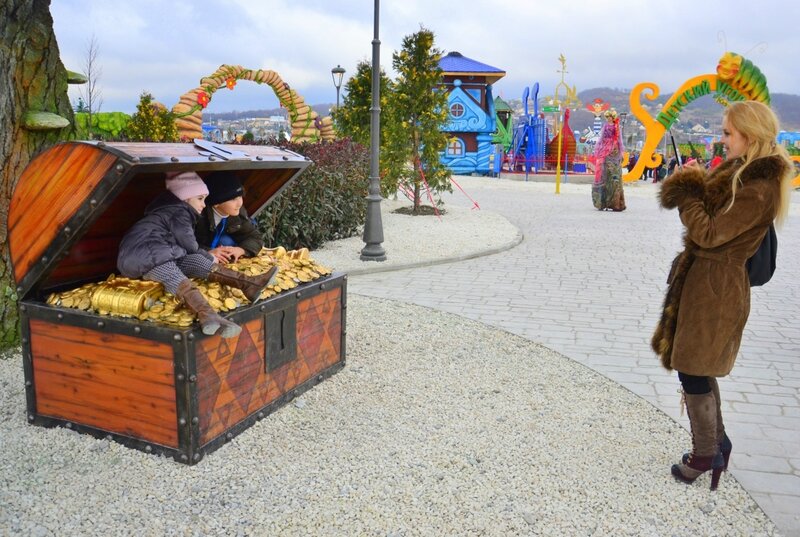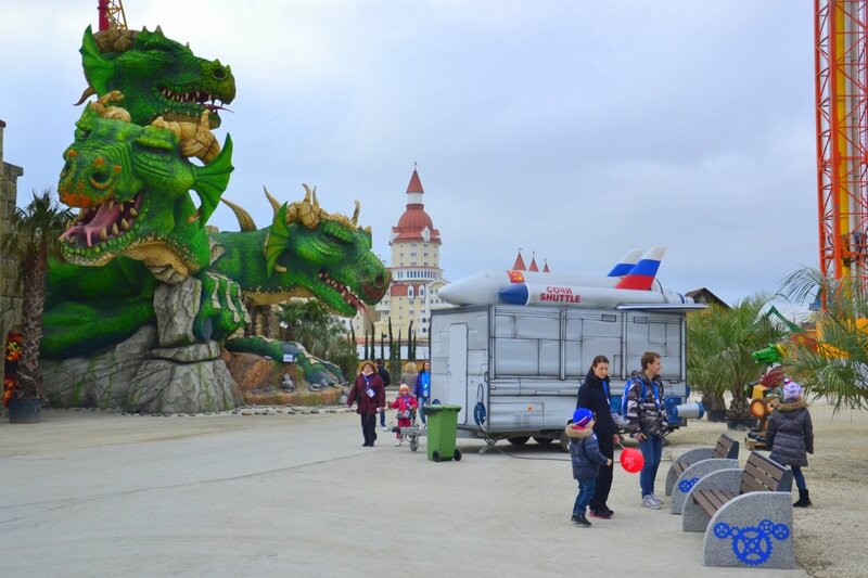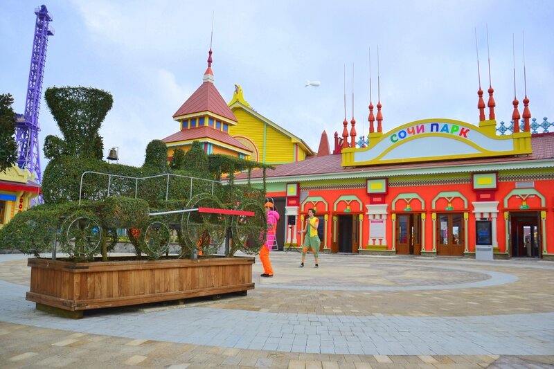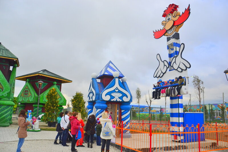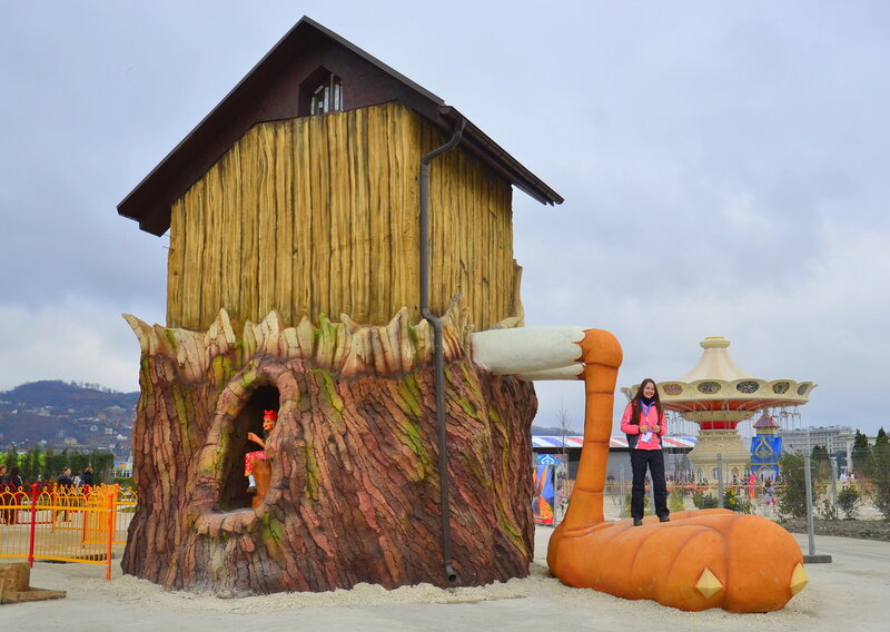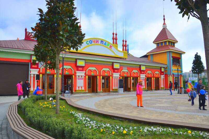 Поскольку, судя по рейтингу и многочисленным репостам, Вам понравилась прогулка по Олимпийскому парку, то сегодня я опубликую свежие фотографии тематического парка развлечений «Сочи-Парк», который хоть и не достроен до конца, но уже радует посетителей и прежде всего, конечно же, детей яркими красками и многочисленными сказочными персонажами из русских народных сказок и любимых мультипликационных фильмов.