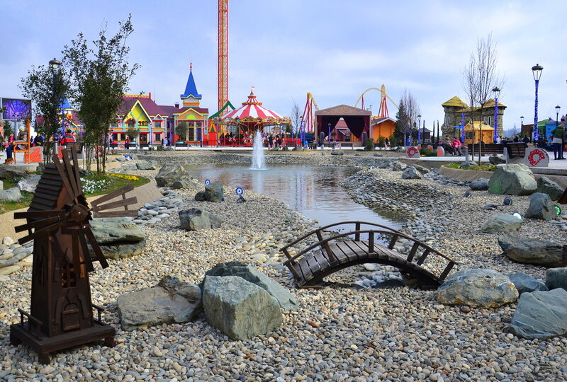 На территории можно встретить сказочных героев-фей и принцесс, акробатов и жонглеров.