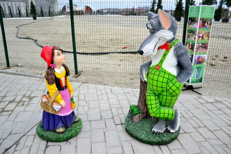 Территория украшена садово-парковыми элементами и фигурами главных героев так любимых нами советских мультиков и сказок.