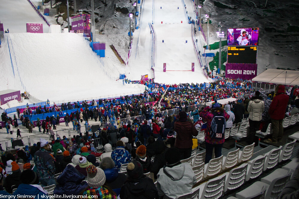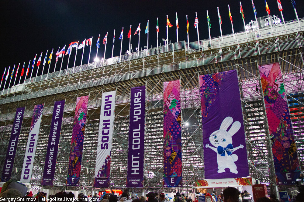 Читатели, не живущие в Сочи, интересуются почему на всех фотографиях из Олимпийского парка нет снега? Для тех, кто не в курсе - в настоящий момент снег в Сочи есть только в горном кластере, где проходят соревнования по биатлону и лыжным гонкам, бобслею и санному спорту, прыжкам с трамплина, фристайлу и лыжному двоеборью.