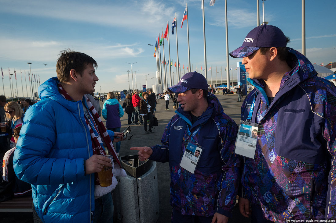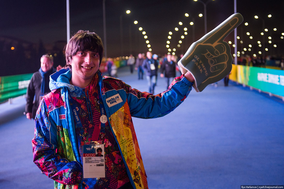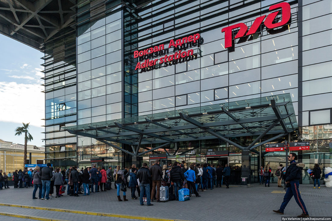03. Еду на новый вокзал Адлера получать паспорт болельщика. На вход очереди. Первое впечатление от Сочи: "Вау, круто! Прямо Европа! Отлично все сделали!". Только расслабляешься, и тут к тебе подходит мужик в кожаной куртке и с кавказским акцентом говорит: "Квартира нужна? Расселяться будем? Такси недорого, куда едем?". Сразу на место ставит тебя. Можно провести олимпиаду в субтропиках, но сочинскую мафию провести не получится ;)