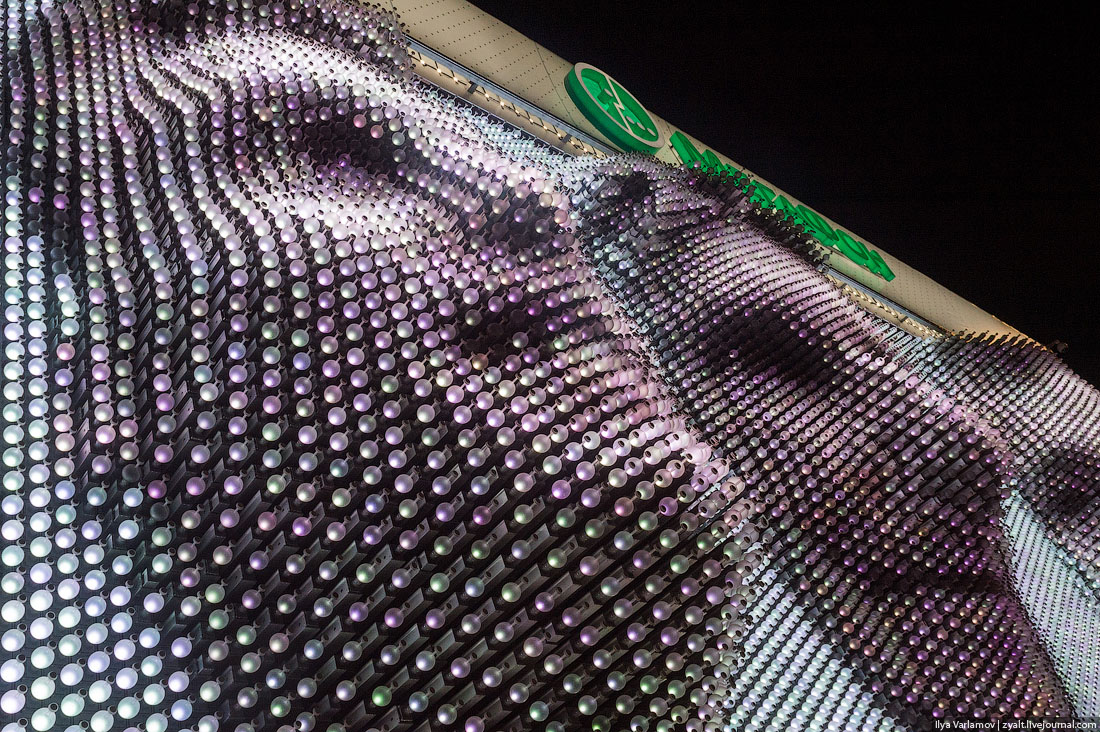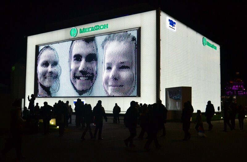 9. Ночью 3Д портреты выглядят лучше. Напомню, что любой желающий может сфотографироваться на 3Д камеру в павильоне Мегфона, а затем его фото будет демонстрироваться на огромном 3Д экране.