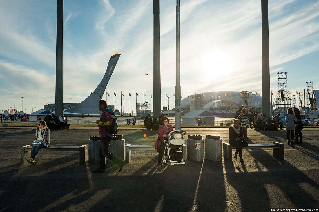 Олимпиада мне интересна в первую очередь как событие. Спортом я не очень интересуюсь, так что болельщик из меня никакой. А вот посмотреть на то, как организован большой спортивный праздник для десятков тысяч людей, интересно. Да и в Сочи давно не был. Интересно своими глазами увидеть, что там понастроили.