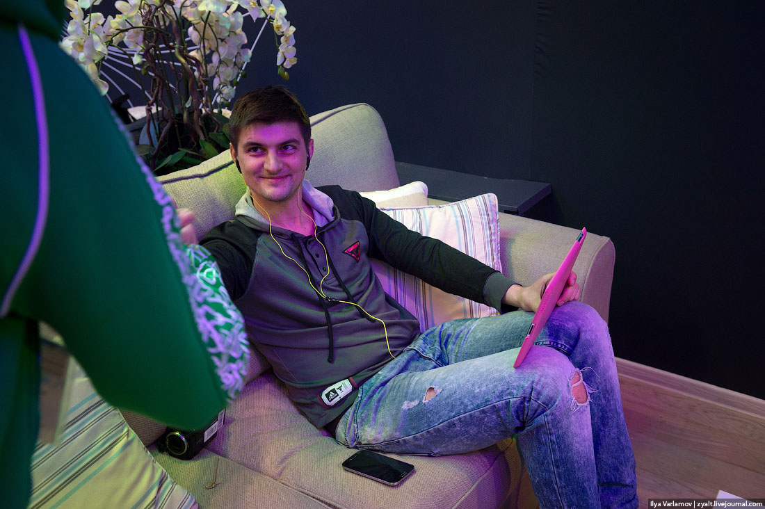 27. Кроме высокоскоростного интернета у Мегафона самый крутой павильон в Олимпийском парке. Он настолько хорош, туда него отдохнуть и поработать приходят сотрудники других компаний. Вот, к примеру, корреспондент Дождя. Говорят, он тут поселился, и охрана даже ночью не может его выгнать.