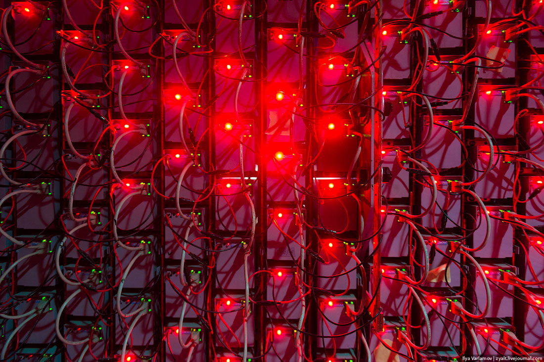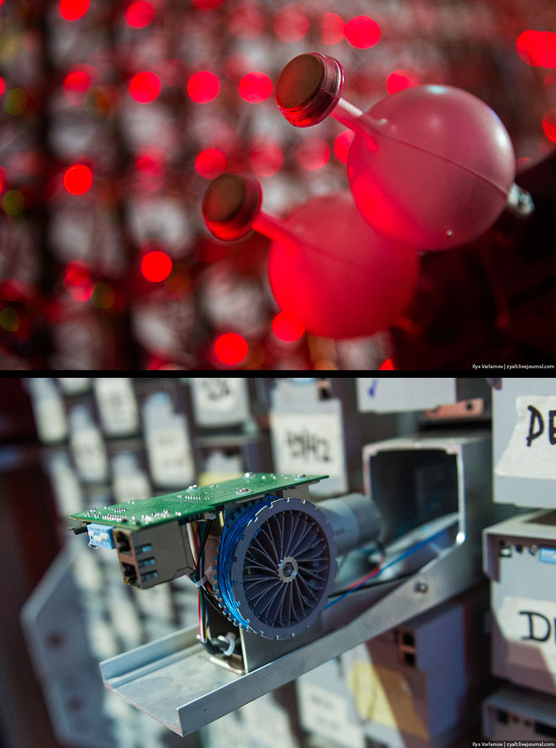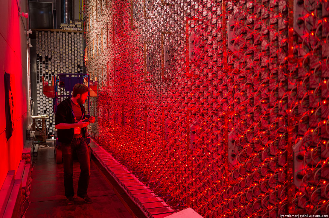 34. Каждый поршень светится на конце. Особенно эффектно стена выглядит ночью.