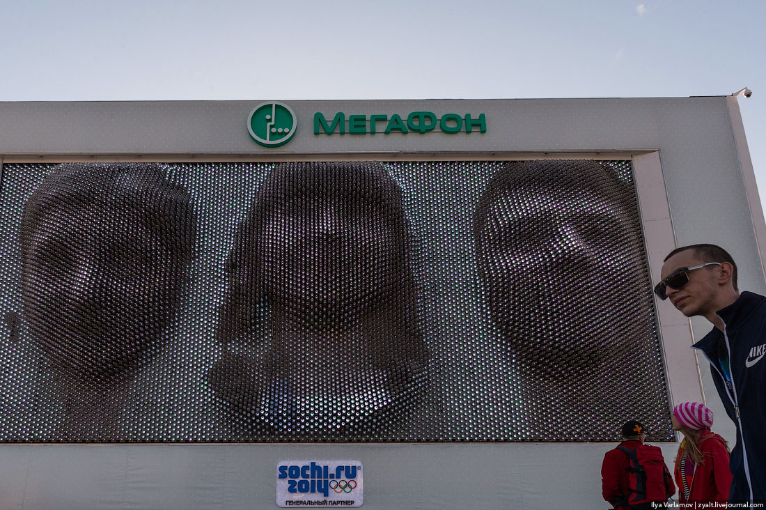 25. В Сочи я приехал по приглашению Мегафона. Мегафон является генеральным партнером Олимпийских игр, и у него тут хорошая квота на гостей. Так что на протяжении всей Олимпиады они возят сюда со всей России гостей. Только у Мегафона на Олимпиаде есть нормальный скоростной интернет. В инфраструктуру они вложили 10 миллиардов рублей: покрыли всю территорию парка сетью 4Г. Даже несмотря на огромное количество людей, средняя скорость - 10-15 мбит. На открытии Олимпиады связью 4Г от Мегафона воспользовались 15% всех гостей, они передали и скачали 400 Гигабайт данных. Билайн рекомендовал мне пользоваться Мегафоном ). Мегафон молодцы, сделали везде отличную связь. Первая Олимпиада с 4Г.