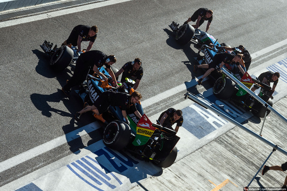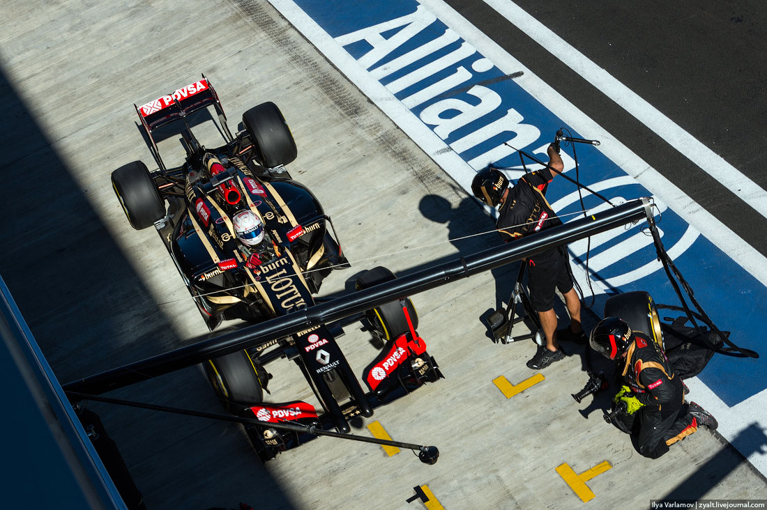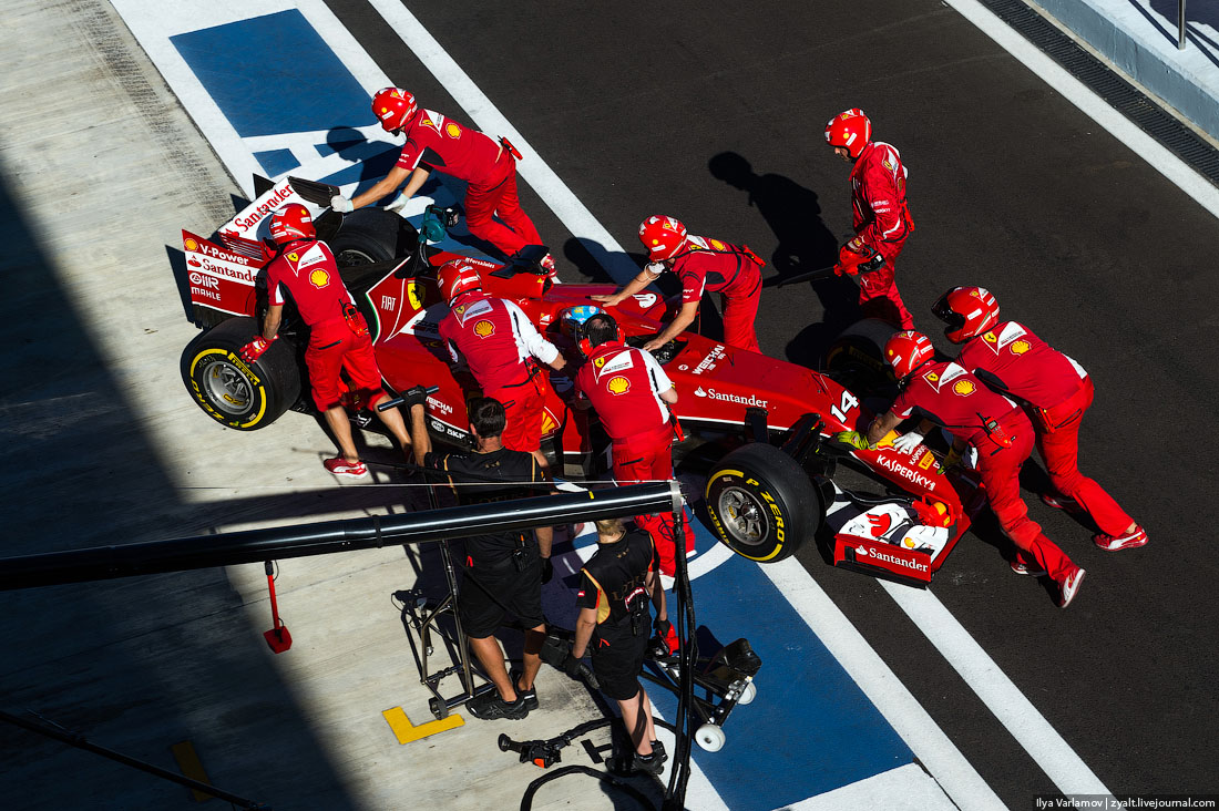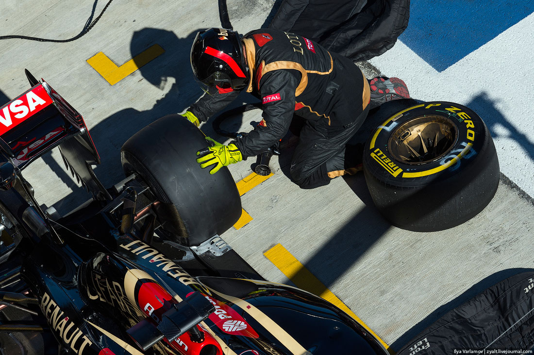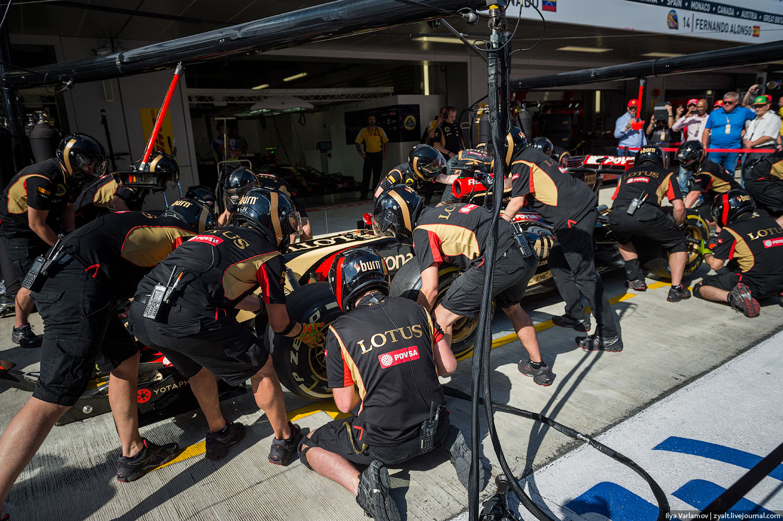 34. Впервые смотрел близко на пит-стоп. Конечно, фантастически круто все выглядит вблизи. За 3 секунды меняют резину. Удивительно слаженная работа команды.