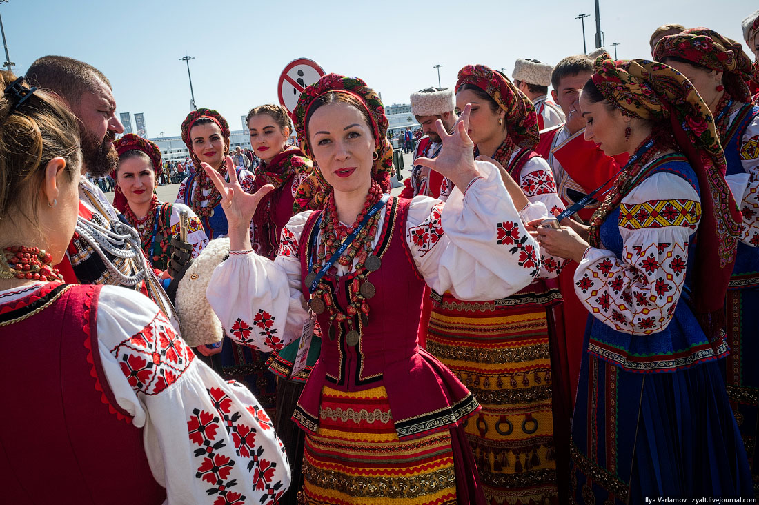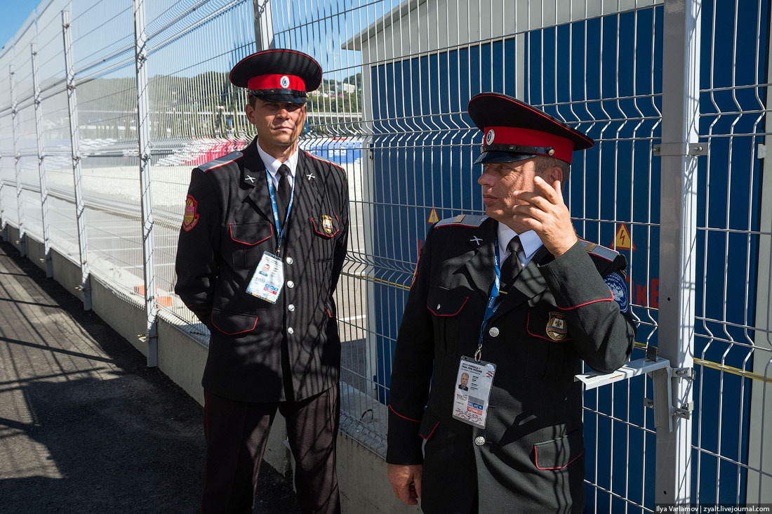 04. Полиции было много, но они как-то прятались по углам, работали профессионально и вежливо. Полицию усилили казачьими патрулями. Неприятно удивили некоторые охранники. Идешь себе на трибуну, а перед тобой какой-то шкаф появляется и орет: "Стоять, куда идешь! Показываем бейджик!" Такое впечателние, что набрали бывших тюремных надзирателей по объявлению. Видно, с охраной не работали особо.