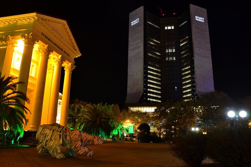 Все-таки к хорошему быстро привыкаешь. Если во время проведения Олимпиады еще как-то старались осветить город огнями, придать так сказать блеска, то нынче даже Ж/Д вокзал, Зимний театр и Художественный музей погрузились во тьму – толи из экономии, толи из-за банального распиздяйства разгильдяйства.