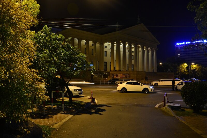 16. Зимний театр ночью – вообще жалкое зрелище. Обратите внимание: нижняя часть колонн не освещается, как и верхняя часть фасада с музами. Часто вижу зама директора Зимнего театра Владимира Мишарина в ночных клубах. Видать он там пропивает все деньги на освещение Зимнего.