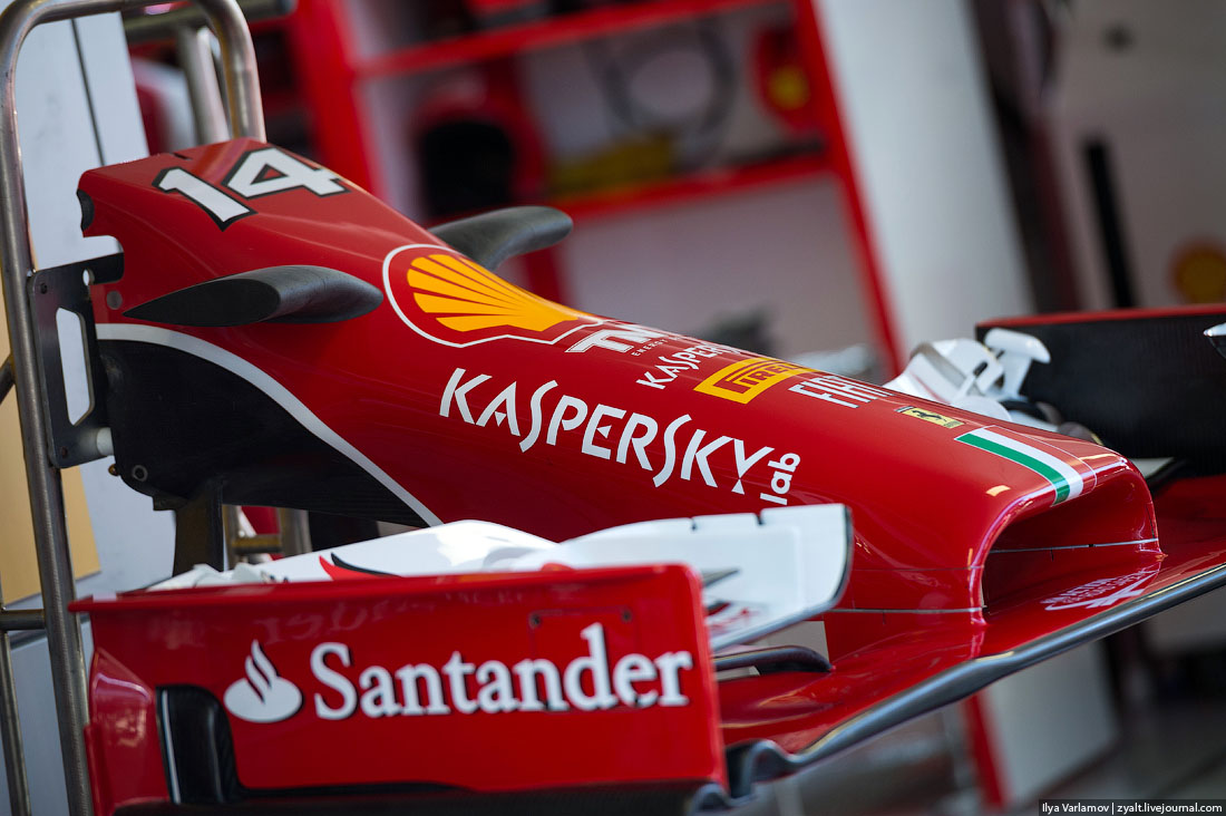 13. Самое приятное на болиде Феррари - это логотип Лаборатории Касперского. Компания делает не только лучший в мире антивирус, но и давно спонсирует команду Феррари на Формуле-1.