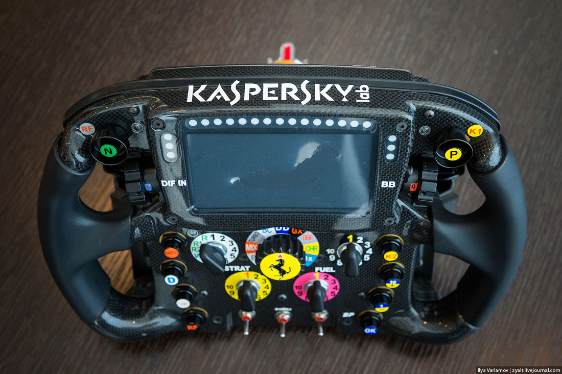 15. В честь первого этапа Формулы-1 в России Феррари разместили логотип Касперского на руле!