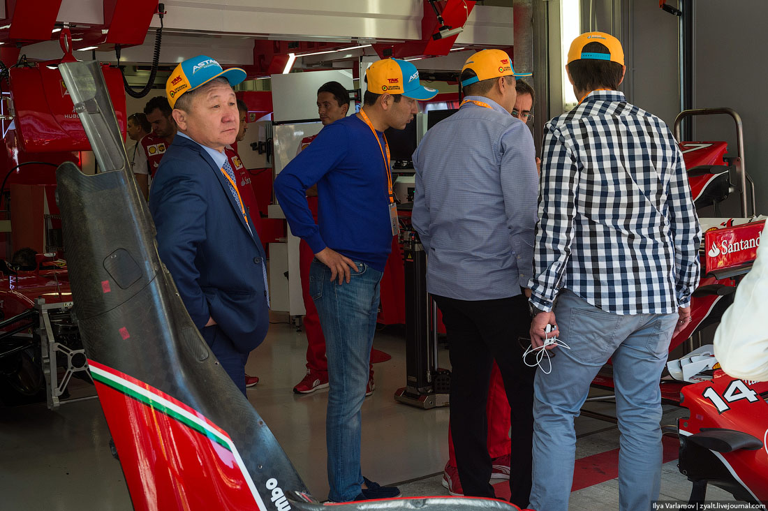 18. До гонки остается час, по боксу Феррари ходят какие-то важные казахи. Говорят, что они могут стать генеральным спонсором команды в следующем сезоне, вместо банка Santander. Это около 100 миллионов долларов.