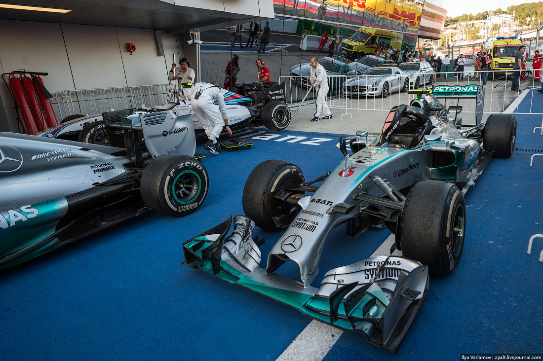 09. В Сочи болиды доставили из Японии, где был предыдущий этап, на Боингах-747. Всего на Гран-при России по воздуху доставили 700 тонн различных грузов, это ради одной гонки. Для сравнения, за всю зимнюю Олимпиаду сочинский аэропорт принял 1600 тонн грузов.