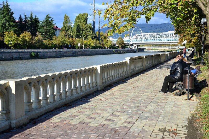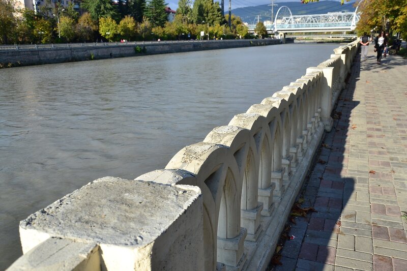 После продолжительный критики на нашем сайте к весне этого года вдоль улицы Конституции все же завершилась реконструкция набережной реки Сочи. Советскую плитку поменяли на новую брусчатку, старый разваленный парапет заменили на новоиспеченный, что даже я грешным делом написал позитивный топик на Блоге.
