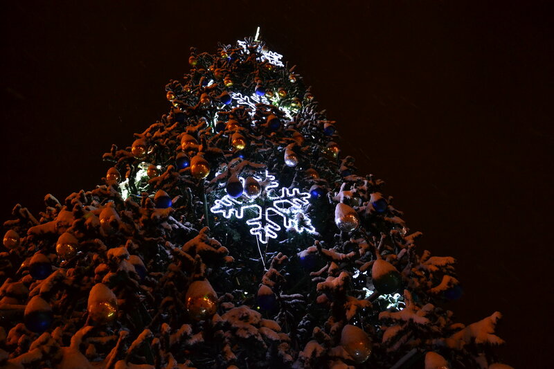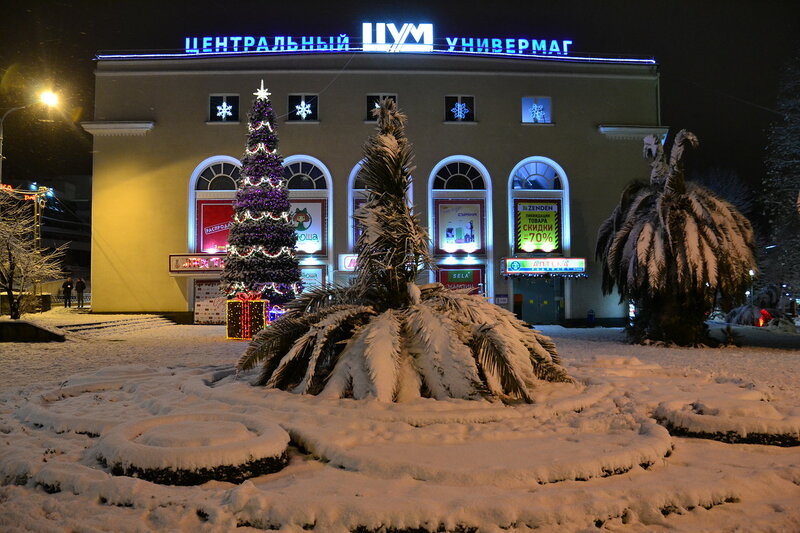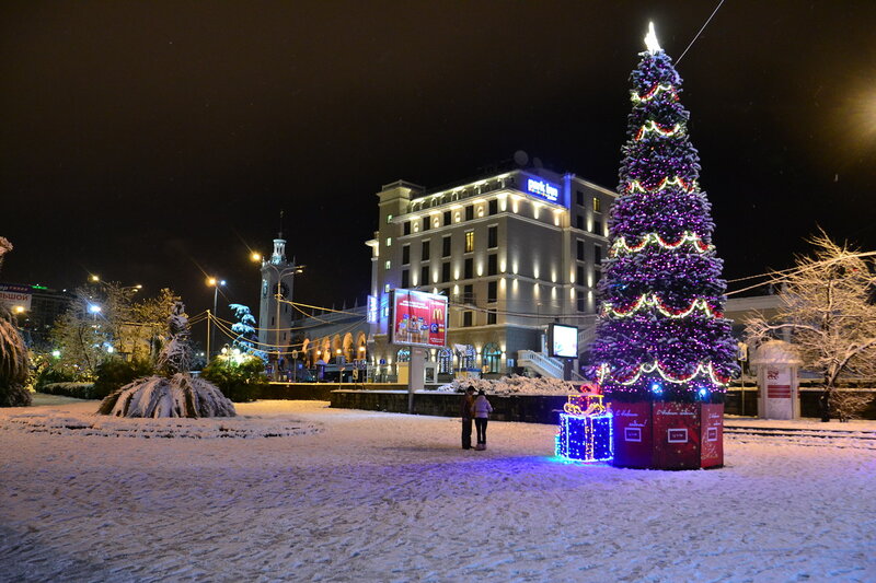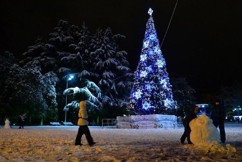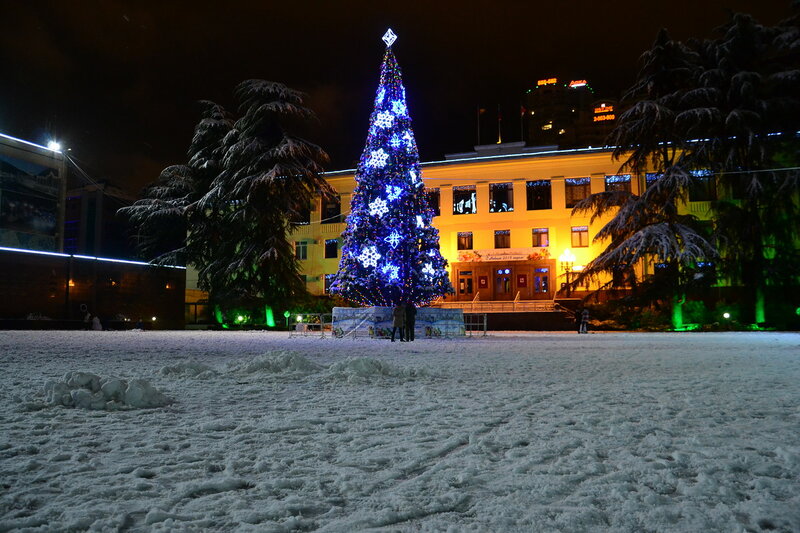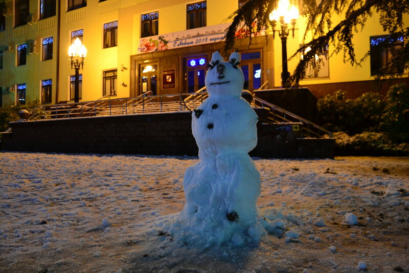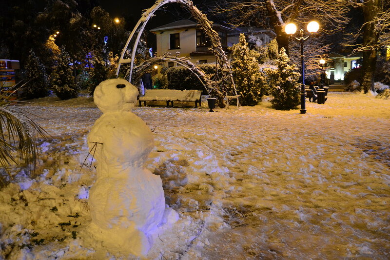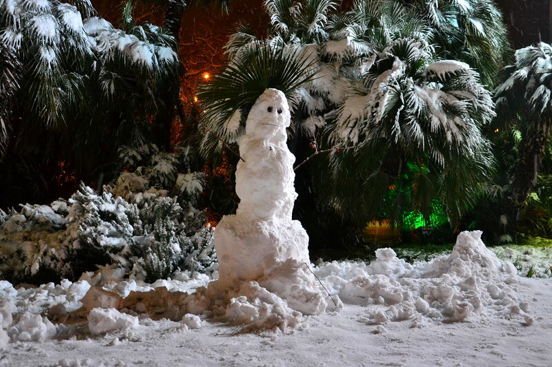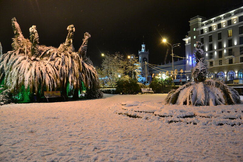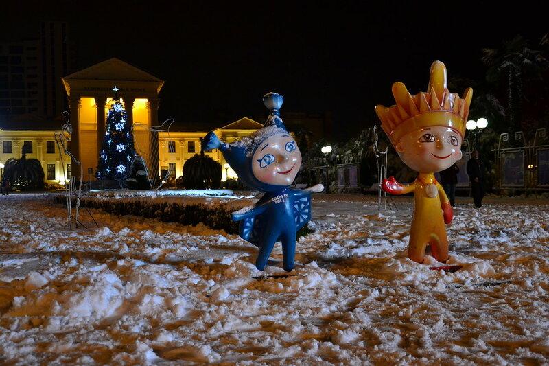 3. Снежинка и Лучик радуются первому снегу в центре Сочи.