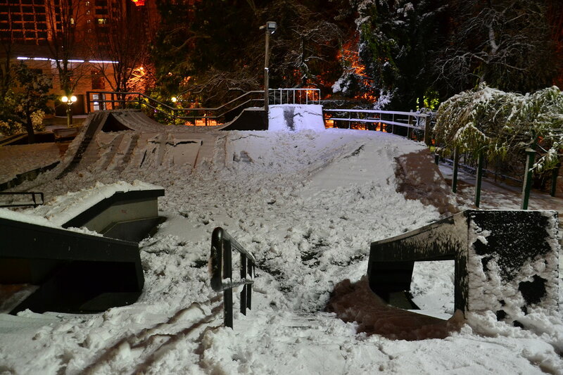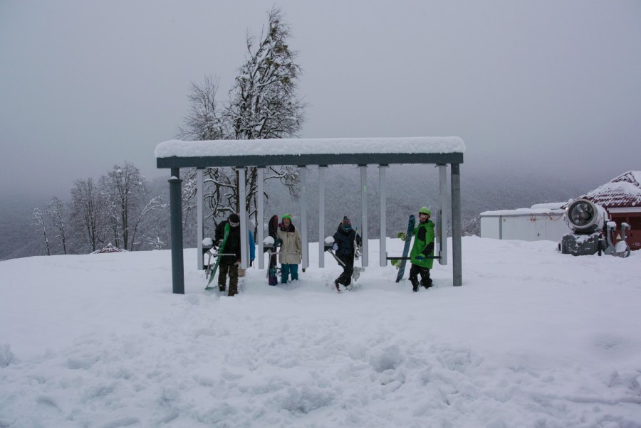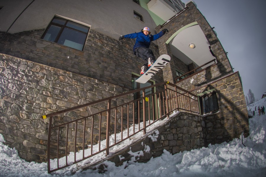 Бывшую Олимпийскую деревню, где находится отель, тоже порядком засыпало и мы нашли несколько крутых спотов для катания на сноуборде. На курорте вместе с нами отдыхал один из лучших российских скейтеров, Макс Круглов