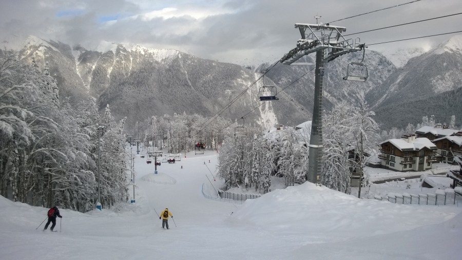 Немного фотографий с вчерашних покатушек с Розы Хутор. Первый солнечный день в Красной Поляне в новом году.