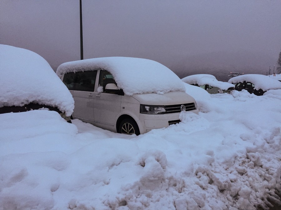 Как и ставить цепи. (спасибо riderhelp.ru за спасение) В первые же дни мы поняли, что без них не то, что спуститься вниз, просто с парковки выехать не удасться. Caravelle переднеприводная и если загнать её в глубокий снег, то выехать будет не так просто. Когдая я после долгой дороги парковался, я даже не подумал об этом, а на утро все понял.