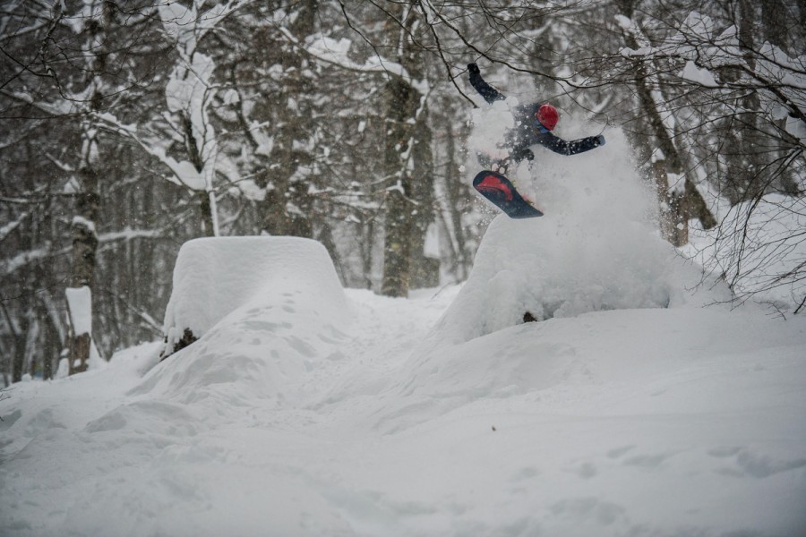 Много катались с моим другом, Артемом Шелдовицким. Катались и снимали. Один из самых лучших райдеров России, во всяком случае мы с ним понимаем друг друга с одного слова, когда идет съемочный процесс. Вот он прыгает в лесу с огромного надува, который с прошлого года называется "Дроп Балаховского". У нас на Розе вообще в разговоре только свои названия: сказочный лес, лес Таклу, дроп Балаховского, скала Москвина и так далее.