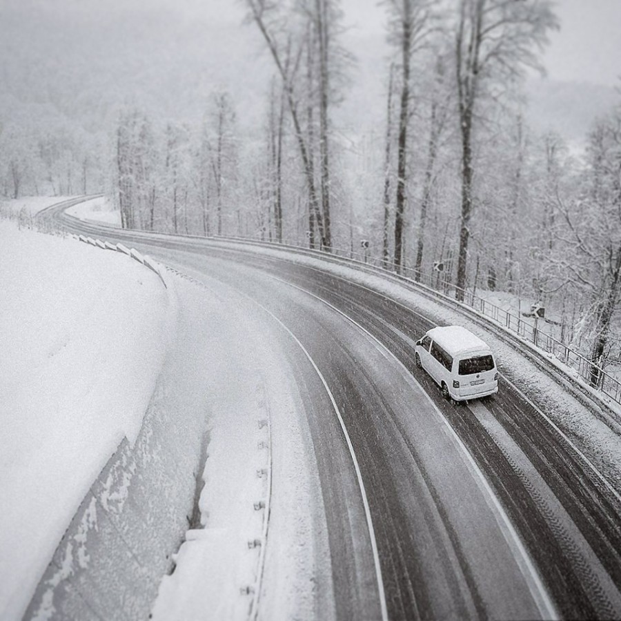 В общем, в эти дни мы проверили все возможности машины в сильнейший снегопад, я, вероятно впервые, включал пониженную скорость на коробке автомат, чтобы проехать через сугробы. Но стоит сказать, что на курорте снег убирают очень быстро и хорошо. Иногда приходишь к машине, а она засыпана. Позовешь рабочего, он вызовет маленький экскаватор и тот все очистит вокруг. Серпантин тоже хорошо чистили, даже несмотря на супер снегопады, но пару раз мы не рискнули ехать по нему без цепей, как на этом фото.
