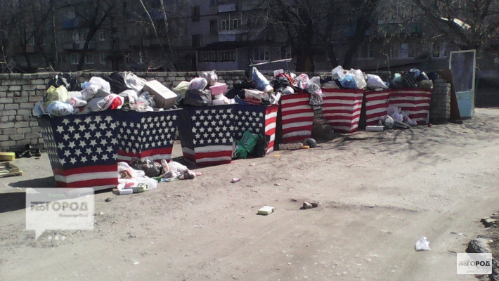 Цвета американского звездно-полосатого флага украсили мусорные контейнеры в городе Волжск.