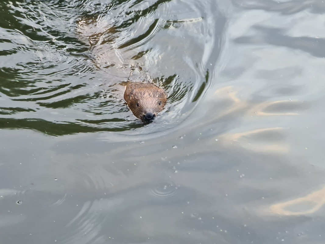 Вокруг мужика собрались бобры, но мужик не боится - бобры добры. Вчера у нас на Яузе.