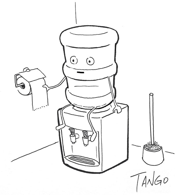 Бутыль 19 литров использует кулер как отхожее место, и причиндалы все рядом для этого.