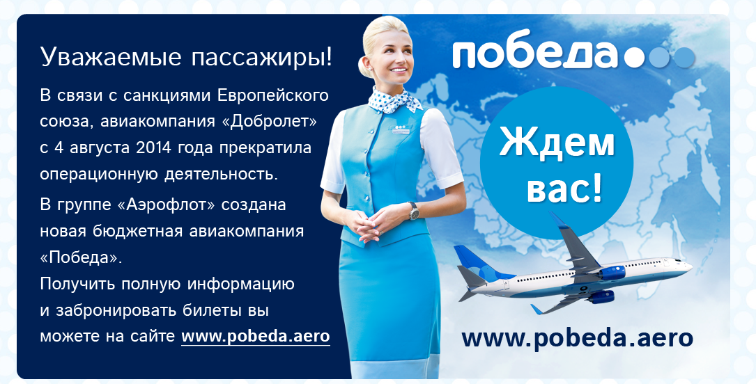 Такая плашка висит на официальном сайте Добролета: http://www.dobrolet.com/