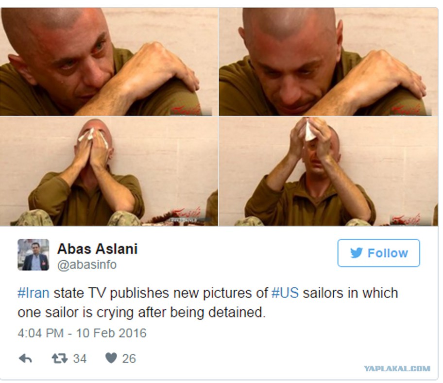 Иран обнародовал новые фотографии, на которых плачет американский военный моряк. Эти фото стали активно распространяться в социальных сетях.