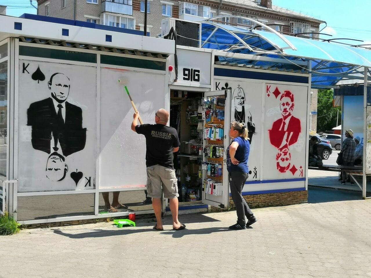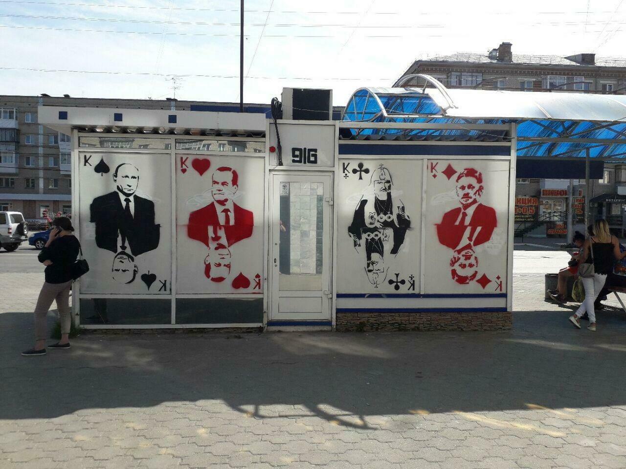 На Урале нарисовали граффити с карточными королями — Путиным, Медведевым, Песковым и патриархом Кириллом