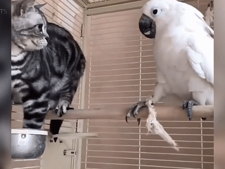 у попугая нет шансов, он сокола 5 кг загрыз и всех собак гоняет