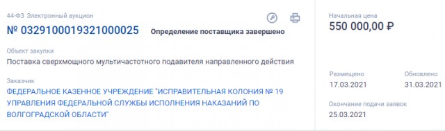 В 2021 году учреждение закупило за полмиллиона рублей 5 «сверхмощных мультичастотных подавителя направленного действия».