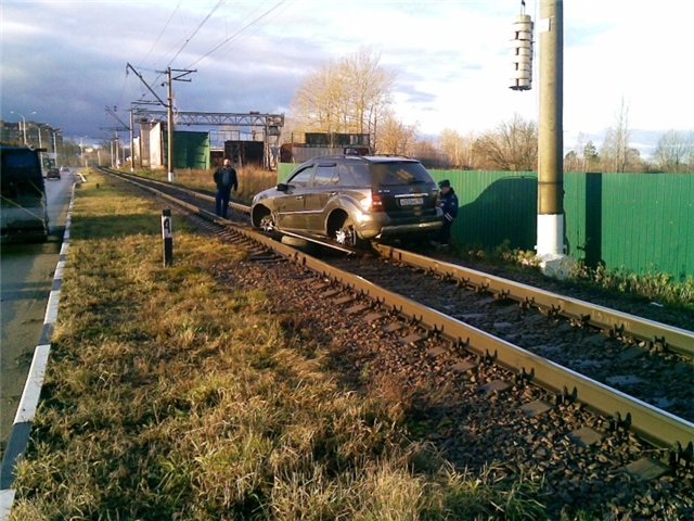 Видет как-то ролик, как специально подготовленный БТР, забирается на Ж/Д полотно, становится на рельсы на дополнительные колеса и едет как по рельсам тепловоз, наверное и он решил так попробывать.