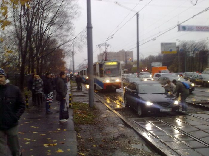 Пипец. Человек корчится, а маршрутка пытается его объехать![]()