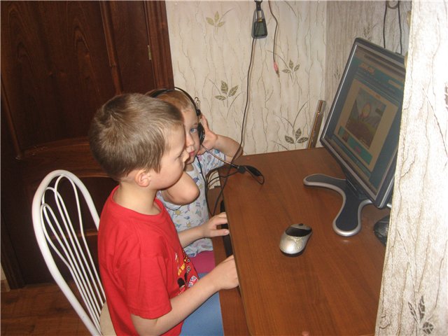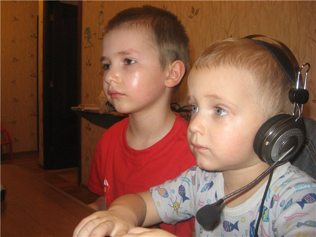 Старший играет на компе в какую-то игрушку. Мелкий радио слушает и смотрит![]()
